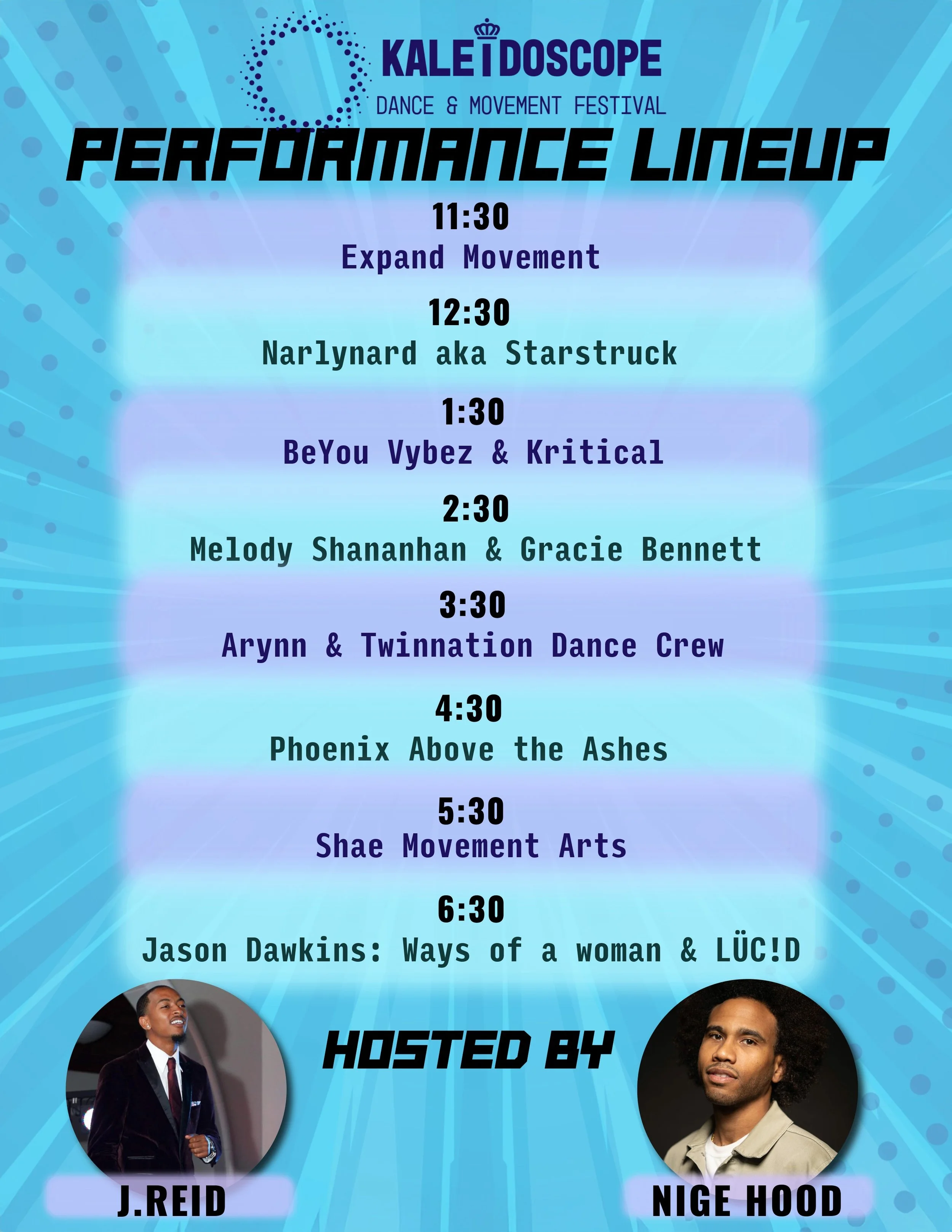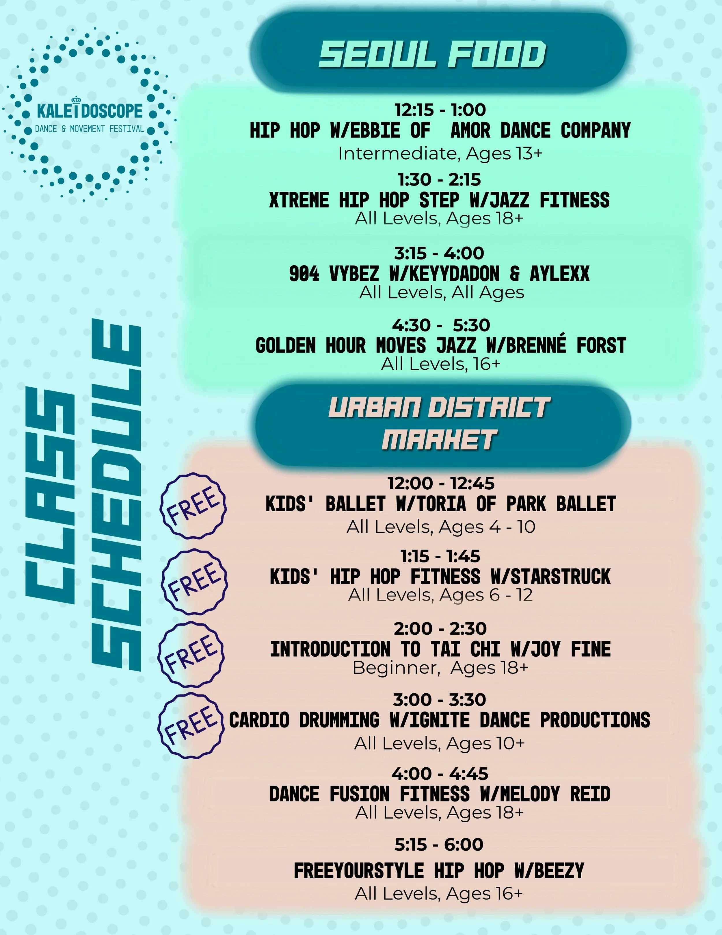 Kaleidoscope is an inclusive, family friendly space! Performances all day are free to the public! We also have free and reasonably priced dance classes throughout the day that are open to the public!